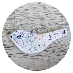 * For example: intricate patterns take longer to complete than simple ones, sequins and beads require more focus + labour than thread; and different creatures – like unicorns and rabbits, (which are to come) – have extra appendages that challenge both scissors and my head. In addition, the information used is channeled and I have to wait until the time is right. Some weeks I am contacted every day. Others not at all.
