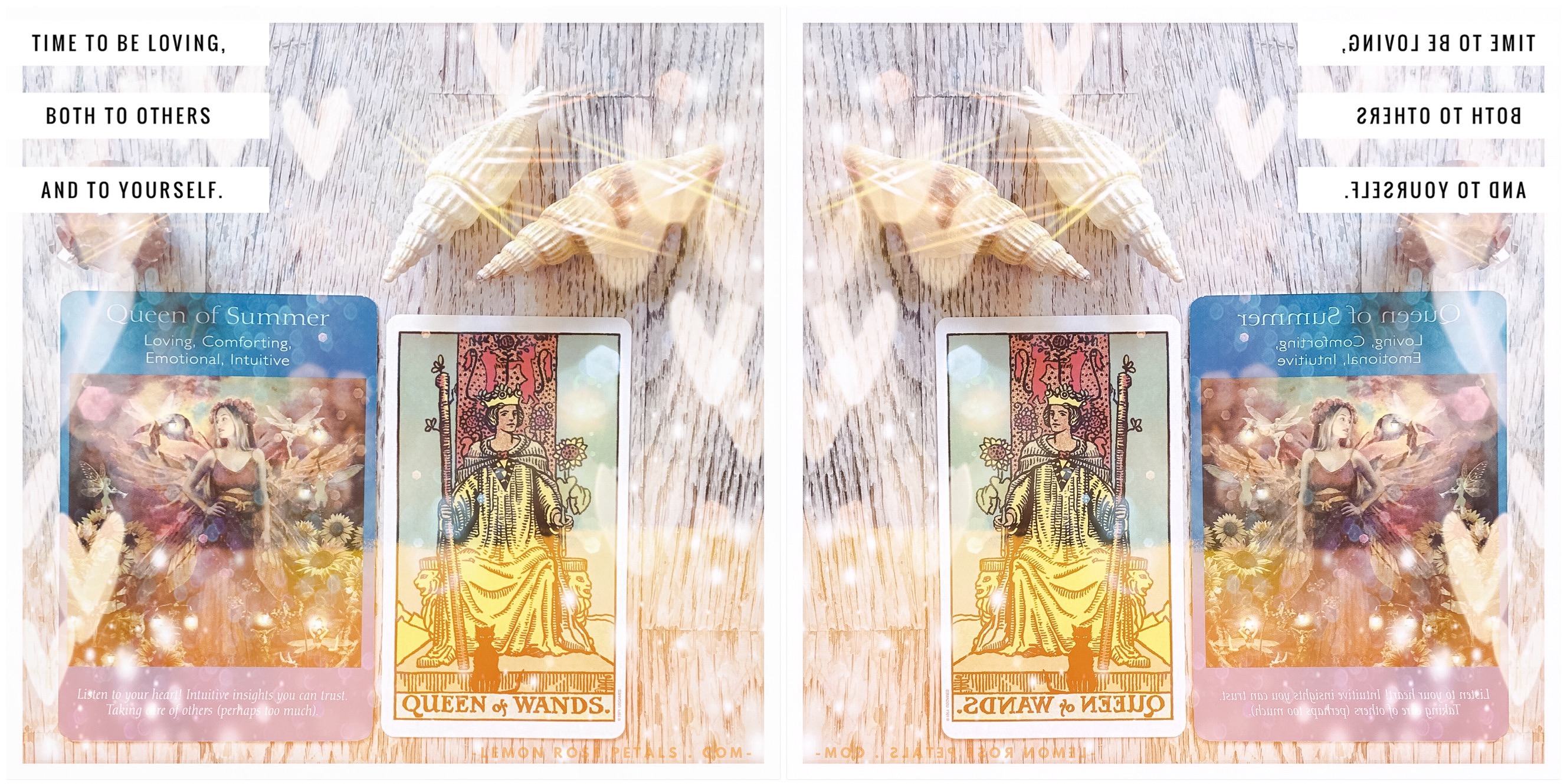 In the Fairy cards, we are told she is loving, comforting, emotional and intuitive. Does she sound like someone you know? Can you yourself relate to this energy? She strikes me as someone who cares very much for those whom she considers ‘her people’; someone who would do anything for them, no matter the personal cost. Someone who hates to see human suffering, who wishes always to help and to heal. Maybe because of this she is denying her own emotions, repressing core needs?